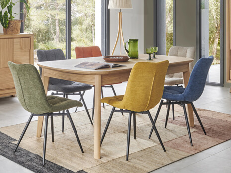 Lorsqu’on choisit sa table, inévitablement vient aussi le choix des chaises. En bois, en tissu ou en métal, chaises, tabourets ou bancs, là aussi vous pouvez composer avec une multitude de possibilités pour un résultat unique. Notre conseil : n’oubliez pas le confort. Et pour ça, rien de mieux que d’essayer en magasin avant de faire son choix.